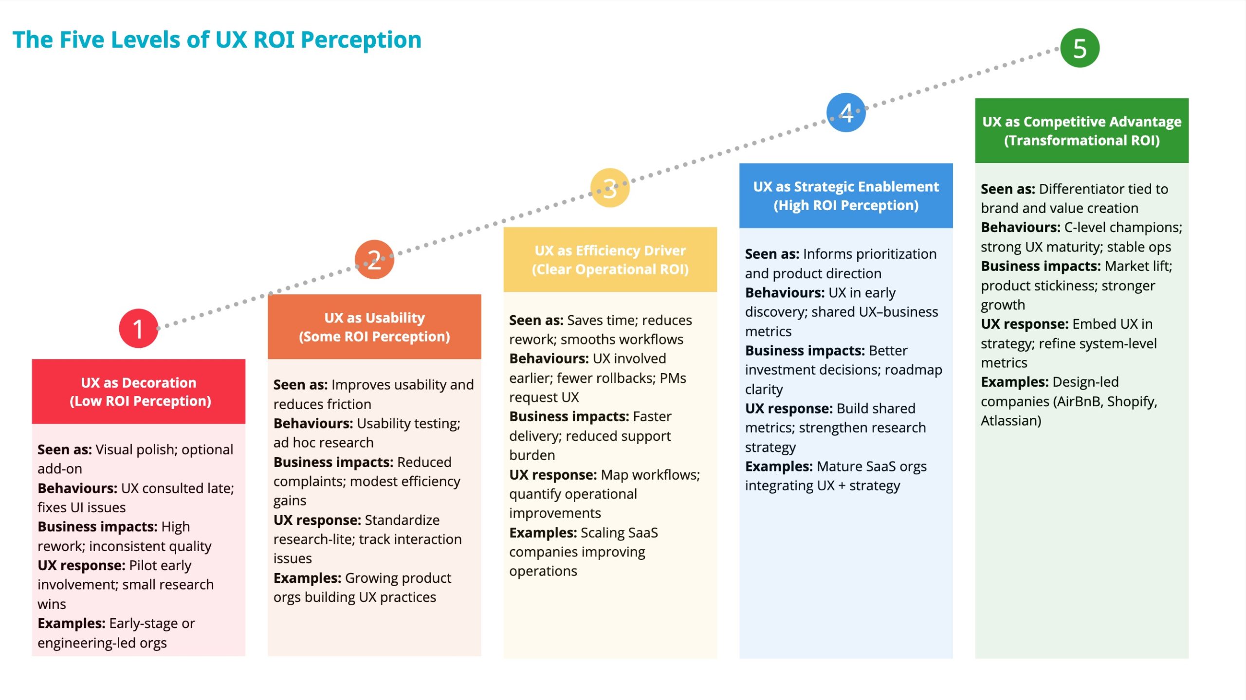 Rather than debating ROI in the abstract, participants mapped UX contributions across all four orders — revealing how design choices influence not just users, but partners, institutions, and the broader operating environment.